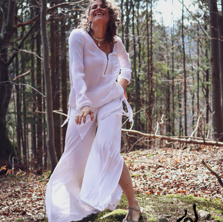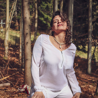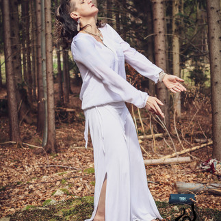 Fotenie s touto ženou nikdy nie je fotenie. Je to pre mňa vždy cesta dnu, kde sa dotýkam seba. Dotýkam sa rôznych častí, ktoré sa práve vtedy potrebujú zvedomiť a byť mnou uzreté. Niekedy mi z tých fotiek stoja chlpy na celom tele, pretože zbadám niečo, o čom som vždy tušila, že tam niekde je, ale nevolala som to do života, lebo som nepoznala alebo odmietala toho potenciál.